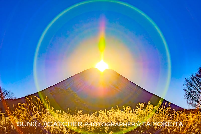 2024.12.21@富士ヶ嶺 冬至の日、富士山頂から神々しく輝く太陽が幾重にも重なる光環を放ち、