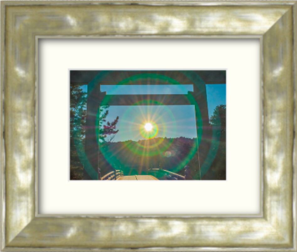2017.12.22@伊勢神宮 太陽の神を祀る伊勢神宮にて冬至の日に鳥居から朝日が昇るように創られた神秘の現象。ハートチャクラを象徴する緑色の光環エネルギーが神々しくお出ましになった1枚。