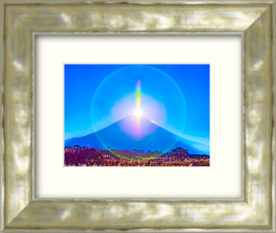 2024.11.14@朝霧高原 毎回進化をしている富士山頂から放たれる光のエネルギーはエレクトリックグリーン&ピンクの剣が天を貫く。■マットの内寸(171mm×120mm)マット外寸(202mm×253mm)【上記サイズの画角はサンプル画像のものより両端が狭くなります。参照と同じ画角を希望の場合はご相談ください】